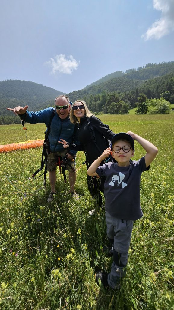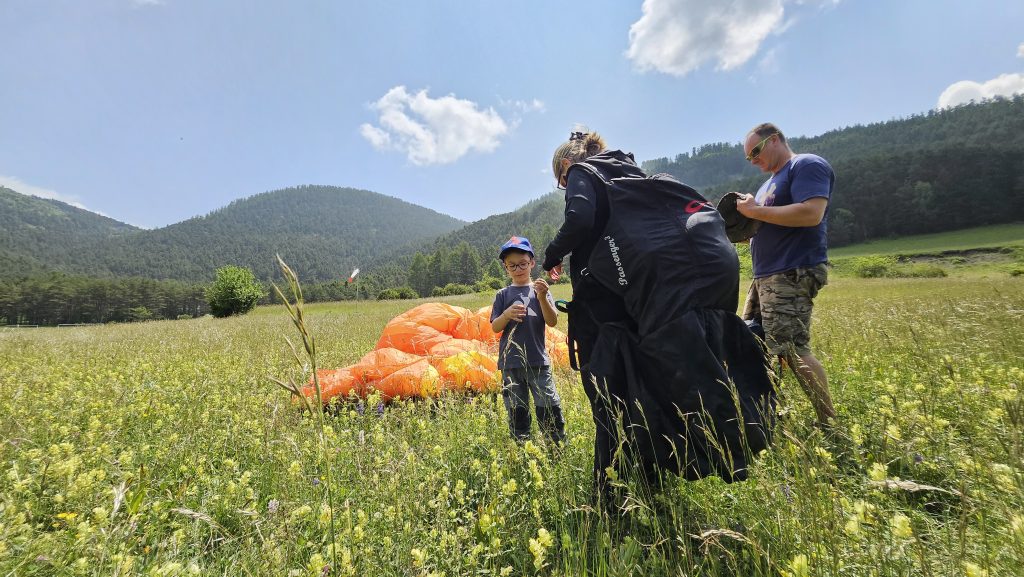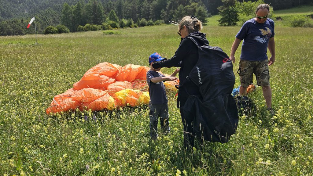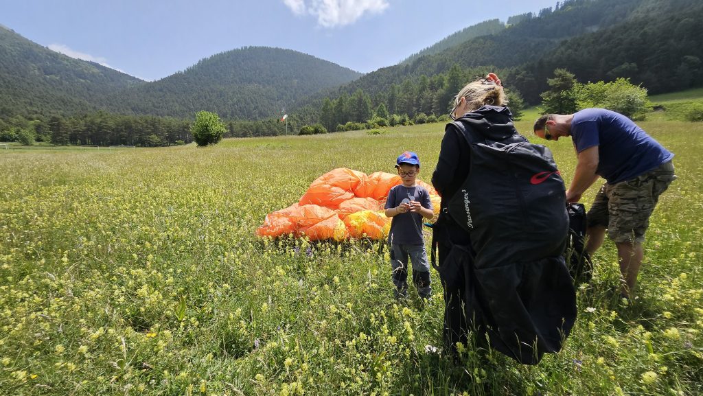 Pendant qu’elle montait, silencieuse et concentrée, en 4×4 jusqu’au site de décollage au-dessus du lac des Millefonts, Benjamin et moi avons trouvé refuge au petit café de la station. Un café brûlant pour moi, une crêpe fondante pour lui. Rires doux, regards vers le ciel. Puis nous sommes descendus sur le site d’atterrissage, au bord de la fête du cheval, là où tout allait se jouer.