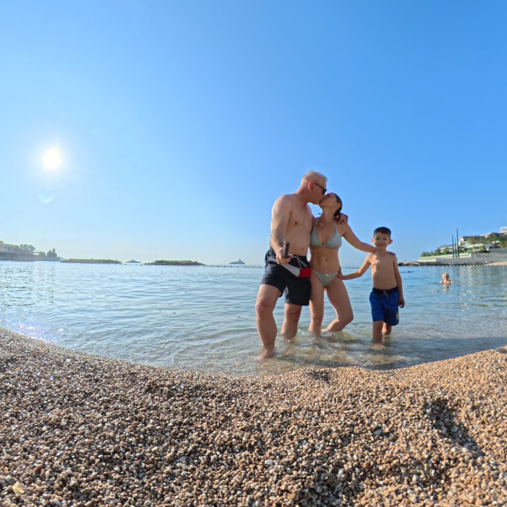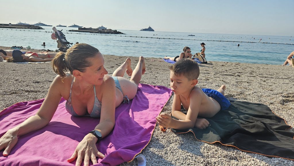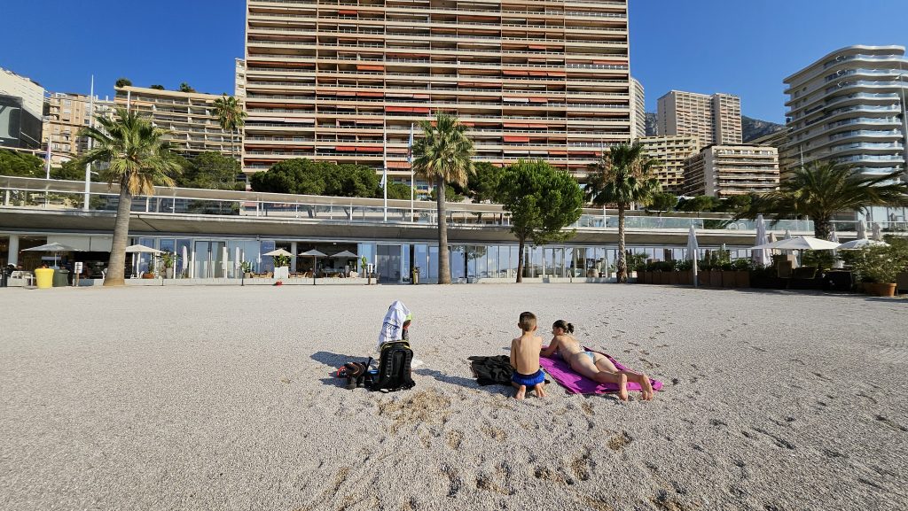 Ce matin-là, la lumière dorée d’un début d’été monégasque caressait les façades encore endormies. À 7h30, nous avons quitté l’appartement, tous les trois — Mélanie, Benjamin et moi — pour une dernière baignade avant le grand départ. La plage du Larvotto, presque déserte à cette heure, nous attendait, calme et cristalline. Seuls quelques habitués partageaient avec nous ce moment suspendu.