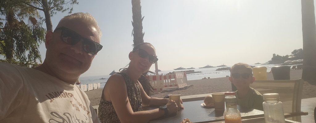 Après cette baignade matinale, direction Costa pour un petit déjeuner en terrasse. L’odeur du café chaud, les croissants encore tièdes, le regard complice de Benjamin sur sa trottinette : tout sonnait comme un adieu discret à notre quotidien avant le long voyage.