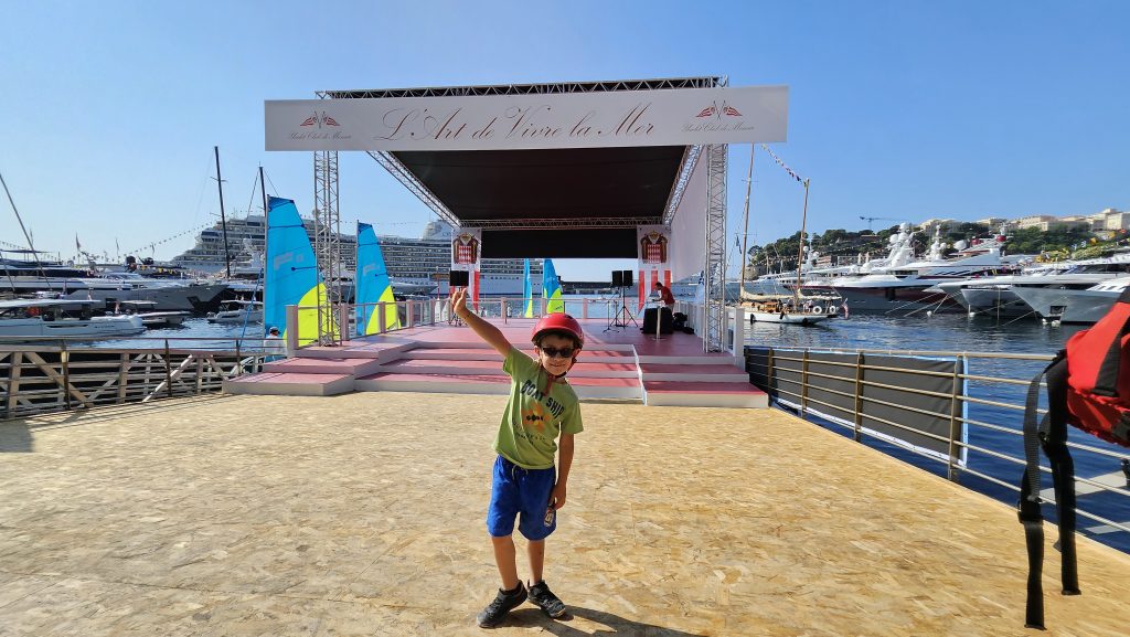 Sur le chemin du retour, à pied et en trottinette, la chaleur commençait à monter doucement. Nous avons contourné le Yacht Club, en pleine effervescence : les préparatifs de la Fête de la Mer et de la Fête de la Musique animaient déjà les quais. Une Monaco en fête, vibrante, comme un clin d’œil au départ imminent.