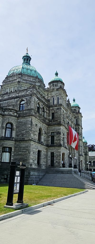 Notre journée a commencé devant l’imposant bâtiment du Parlement de la Colombie-Britannique, situé face à Inner Harbour.