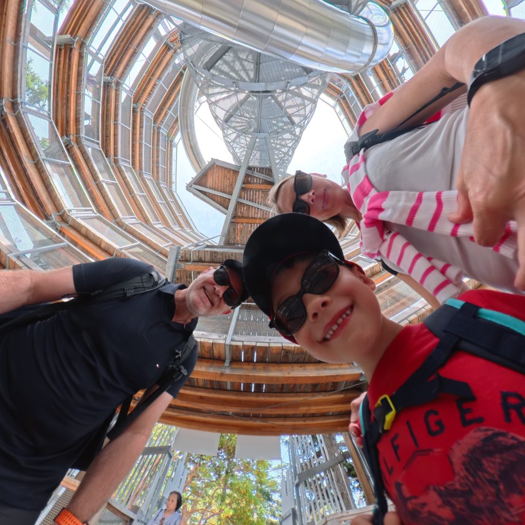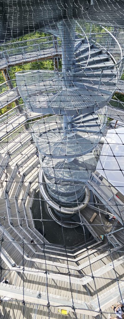 Le clou : le retour par un immense toboggan tubulaire qui redescend en spirale dans la structure. Benjamin était fou de joie. Mélanie n’a pas hésité. Et moi ? Je me suis dit : “autant redescendre avec panache”.
