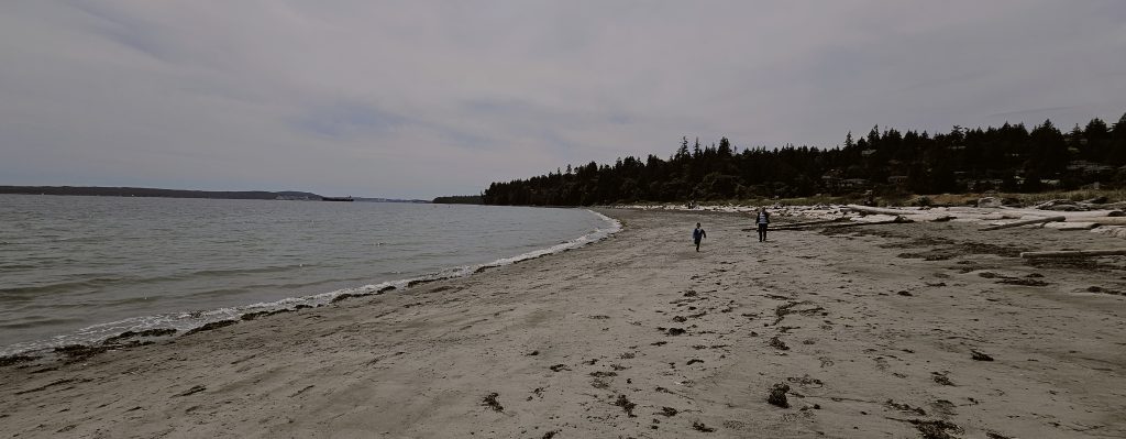 Ce parc est un joyau discret de Nanaimo. Autrefois territoire des Snuneymuxw, une Première Nation de la région, cet endroit a toujours été un espace de rassemblement et d’observation du vivant. Lorsqu’on marche ici, pieds nus sur les étendues humides, on entre dans une sorte de laboratoire vivant : des coquillages par centaines, de petits crabes qui filent sous les algues, et un silence marin seulement troublé par les cris des goélands. Benjamin, bien entendu, a rapidement décrété qu’il était un explorateur de l’estran en mission “top secrète”.