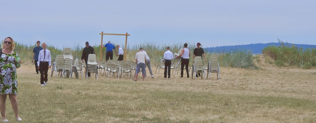 À notre départ, une scène digne d’un film se dessinait : des chaises blanches étaient posées en demi-cercle, des guirlandes flottaient dans la brise, et un couple riait en déposant des fleurs sur le sable… un mariage se préparait au bord de la baie, comme une promesse murmurée entre mer et ciel.