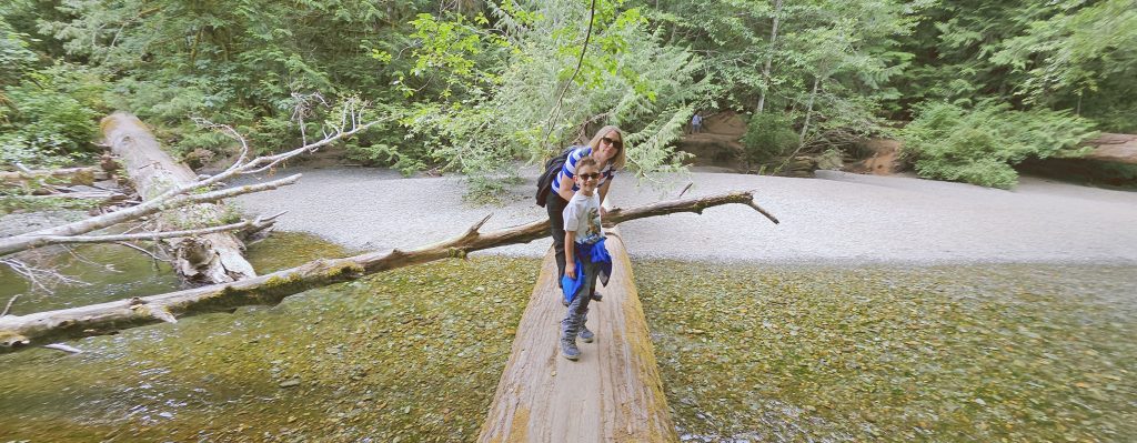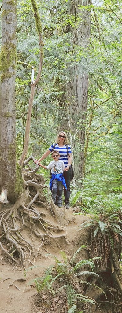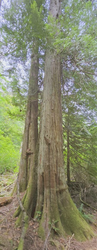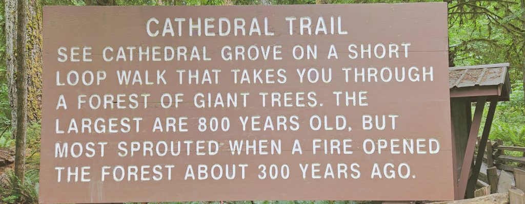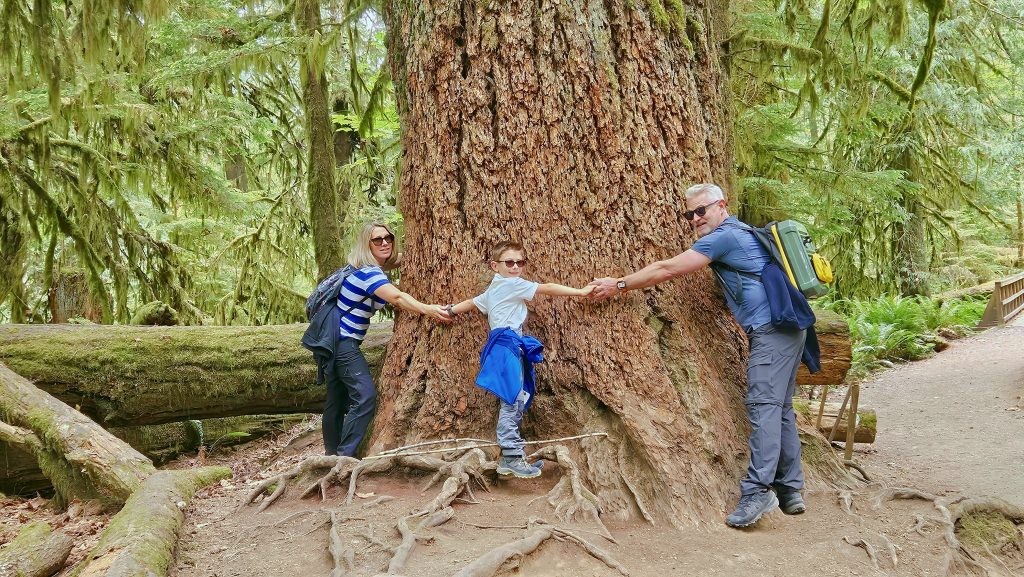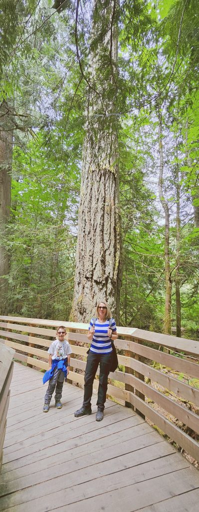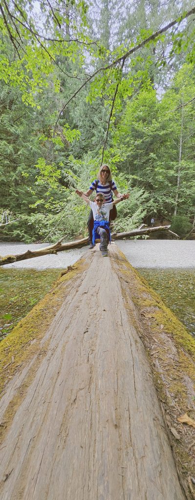Nous avons ensuite repris la route vers l’intérieur de l’île, direction Cathedral Grove, dans le MacMillan Provincial Park. Ce lieu porte bien son nom : entrer dans cette forêt, c’est comme pénétrer dans une cathédrale végétale. Le silence y est feutré, presque religieux, et les arbres, vieux parfois de plus de 800 ans, s’élèvent comme des piliers célestes. Ces douglas taxifoliés, certains parmi les plus anciens du Canada, peuvent mesurer jusqu’à 75 mètres de haut. À leurs pieds, une végétation luxuriante de mousse émeraude, de fougères géantes, et de troncs tombés recouverts d’un velours végétal.