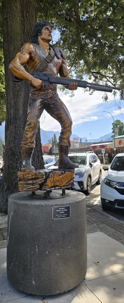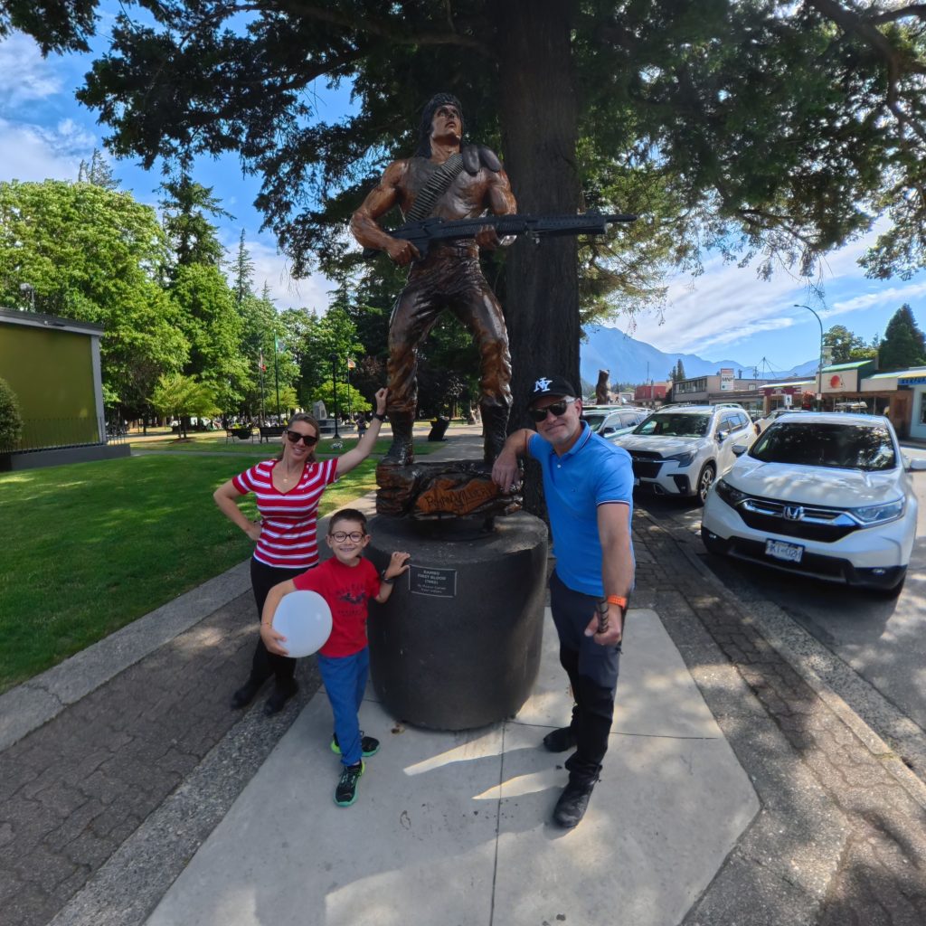 En route vers les majestueuses Rocheuses et Calgary, nous avons fait escale dans le petit village de Hope. Niché au cœur des montagnes de la Colombie-Britannique, Hope est surtout connu pour avoir servi de décor au film culte « Rambo: First Blood » en 1982.Pour les cinéphiles, se promener dans les rues de Hope, c’est un peu comme marcher dans les pas de Sylvester Stallone. Le village a été choisi pour ses paysages sauvages et ses forêts denses, parfaitement en phase avec l’atmosphère brute du film. Le célèbre pont en bois, que l’on voit dans les premières scènes, a malheureusement disparu, mais l’esprit du film plane encore sur les lieux, et plusieurs plaques commémoratives rappellent l’héritage cinématographique du village.Mais Hope, c’est bien plus que Rambo. Ce village est une porte d’entrée vers de magnifiques randonnées, comme le Hope Lookout Trail, offrant une vue imprenable sur la vallée du Fraser. C’est aussi un endroit riche en histoire autochtone, où l’on peut découvrir l’art et la culture des peuples Sto:lo.Pour notre nuit sur place, nous avons séjourné à l’Alpine Motel, un établissement simple mais confortable, parfait pour une halte reposante avant de reprendre la route.Ainsi, Hope restera pour nous un doux mélange de nostalgie cinématographique et de découverte naturelle, un petit morceau d’histoire niché entre les montagnes et les forêts de Colombie-Britannique.
