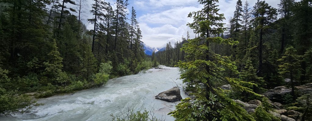 La journée d’hier restera sans doute comme l’une des plus intenses et contrastées de notre road trip. Une route de haute montagne entre averses et éclaircies, entre vertige et émerveillement, entre histoire naturelle et émotions simples. De Revelstoke jusqu’à Canmore, en passant par les chutes Takakkaw et le mythique lac Louise, chaque arrêt fut une parenthèse d’émerveillement.
