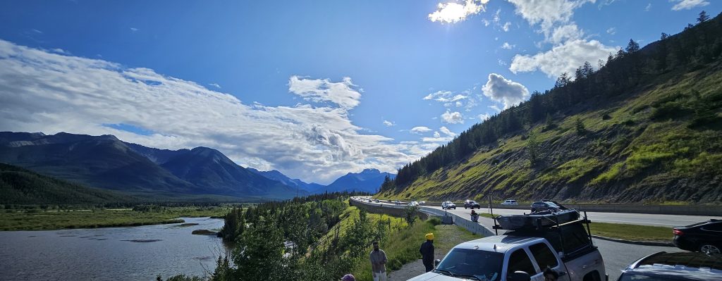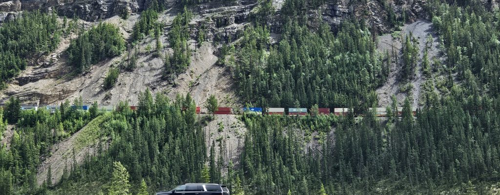 Entre la Colombie-Britannique et l’Alberta, nous avons traversé une frontière naturelle et symbolique, et changé de fuseau horaire (une heure de plus). En un jour, nous avons vécu l’hiver sur les sommets, le printemps dans les forêts, et l’été au bord d’un lac.