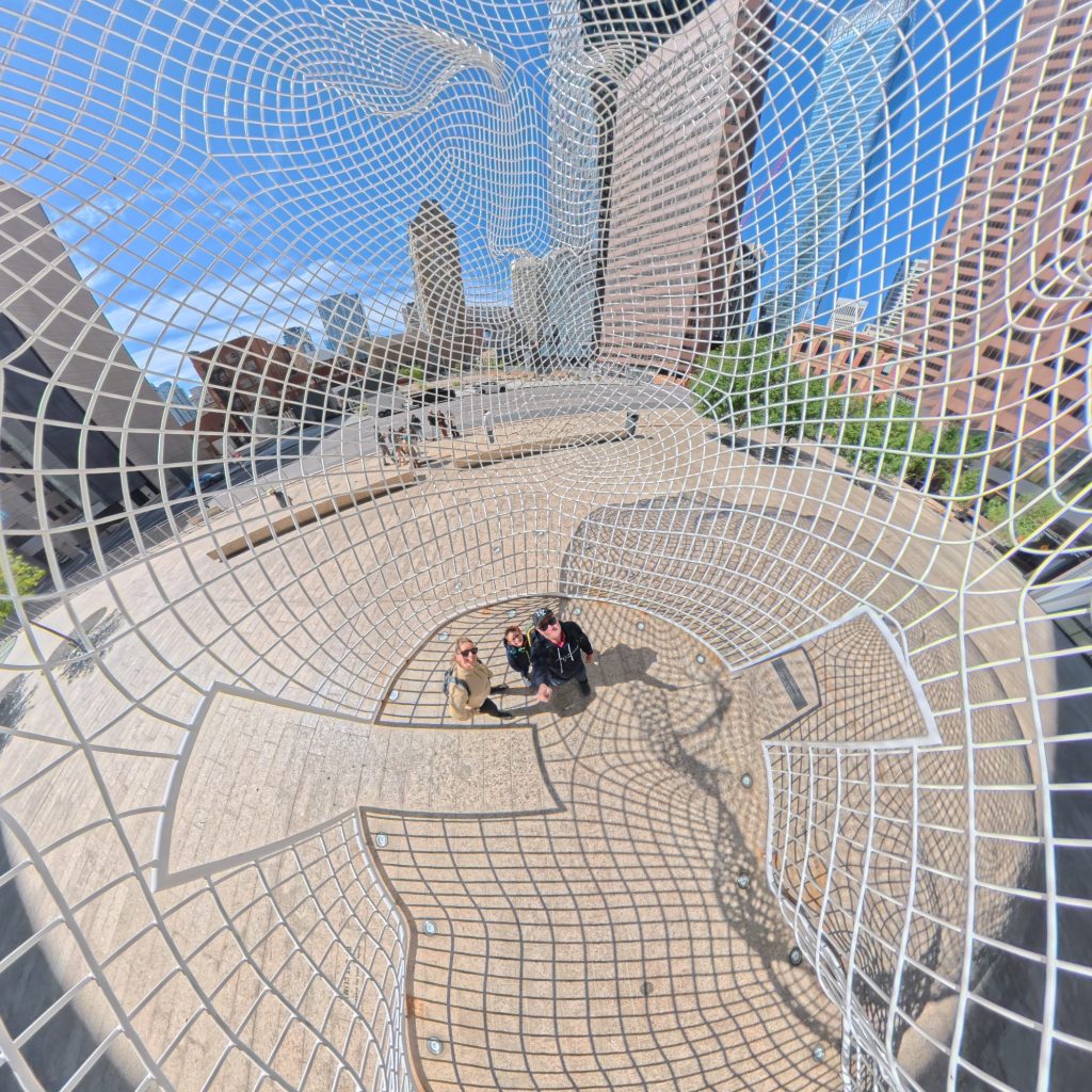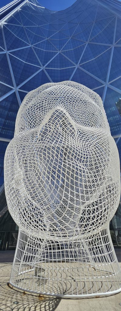 Face à l’imposant gratte-ciel Bow Building se dresse Wonderland, une sculpture géante en treillis d’acier représentant une tête de jeune fille. Haute de 12 mètres, elle a été conçue par l’artiste espagnol Jaume Plensa. On peut entrer littéralement à l’intérieur du visage, comme si on pénétrait une idée, un rêve. Le contraste entre la lourdeur des bureaux d’affaires environnants et la légèreté de cette œuvre est saisissant.