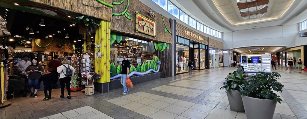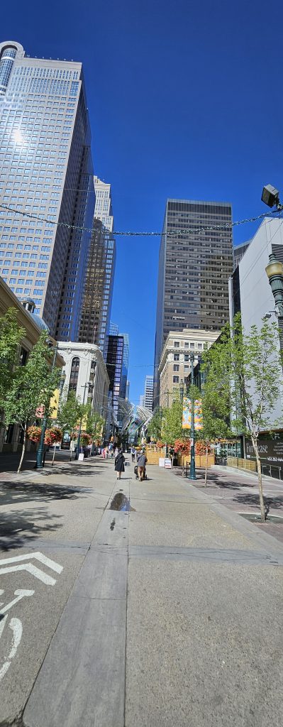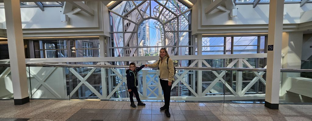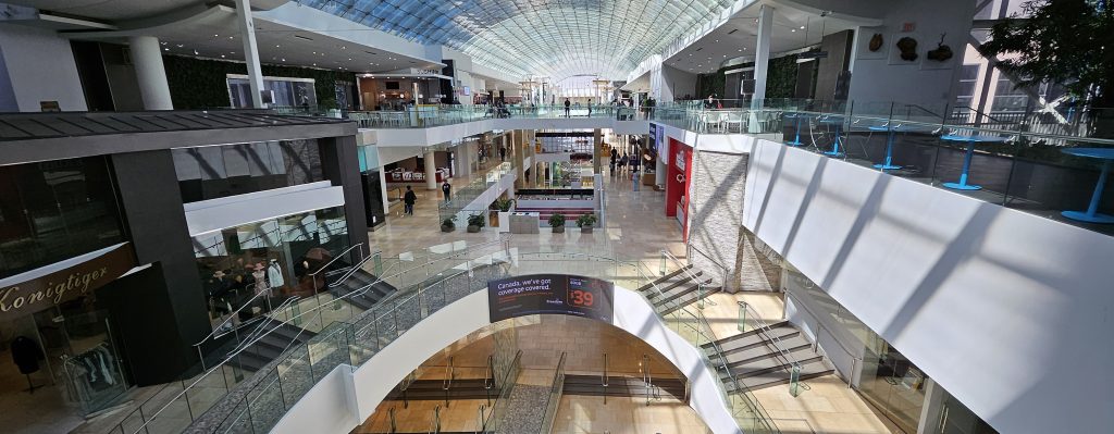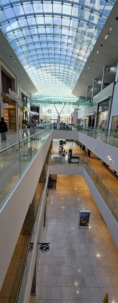 Le Market Mall, l’un des centres commerciaux les plus grands et les plus anciens de la ville (1963), fut notre pause déjeuner. Un lieu sans charme particulier mais qui nous a permis de nous poser, recharger les batteries, et observer le quotidien calgarien : familles en weekend, jeunes en sortie shopping, retraités prenant leur café dans les allées.