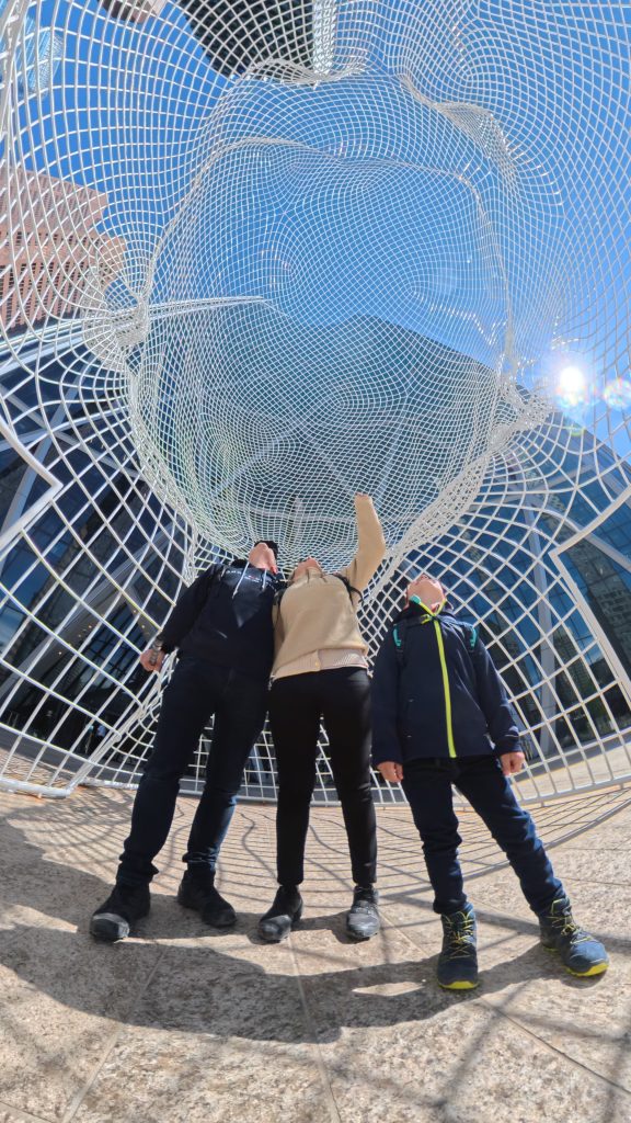 Benjamin a adoré l’effet d’optique et s’est amusé à passer à travers les lignes d’acier. Mélanie, elle, s’est interrogée sur le regard vide de la sculpture, tourné vers le ciel. Nous, on y voyait presque un adieu, un moment de suspension avant de refermer le livre de l’Ouest.