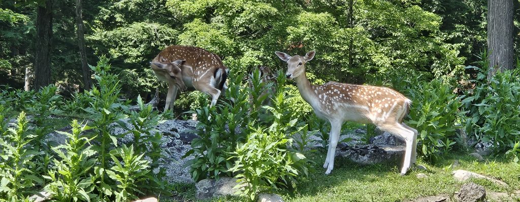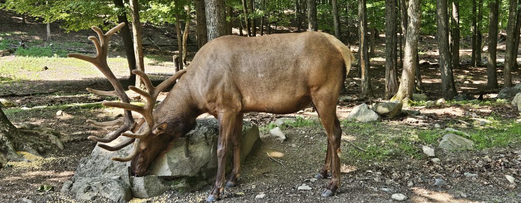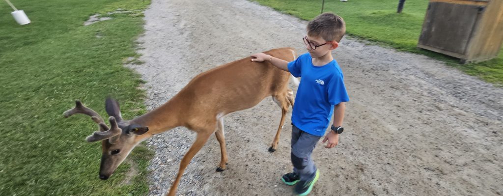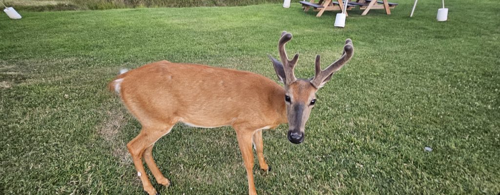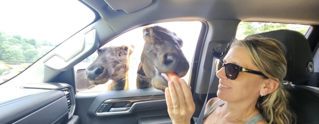🛻 Nous avons entamé la visite en début d’après-midi, embarqués dans une boucle de 12 kilomètres à travers forêts boréales, collines, marais et prairies. Carottes en main, nous avons fait la connaissance de dizaines de cerfs, daims, chevreuils et wapitis venus directement à notre vitre mendier leur goûter. La magie opère immédiatement.