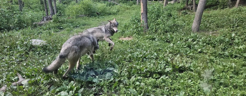 🐺 L’émotion est difficile à décrire : les loups sont là, à à peine un mètre, alertes, magnifiques, indomptables. Des louveteaux apparaissent, joueurs, maladroits, encore surpris d’exister. Le silence est total, suspendu. Ce n’est pas un zoo. C’est une rencontre.