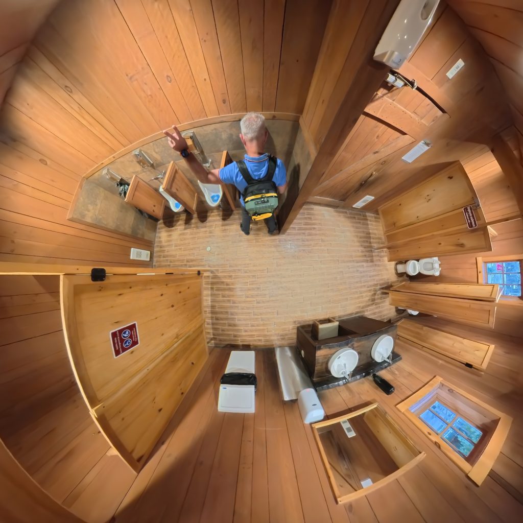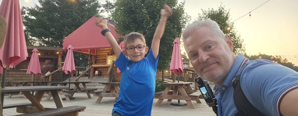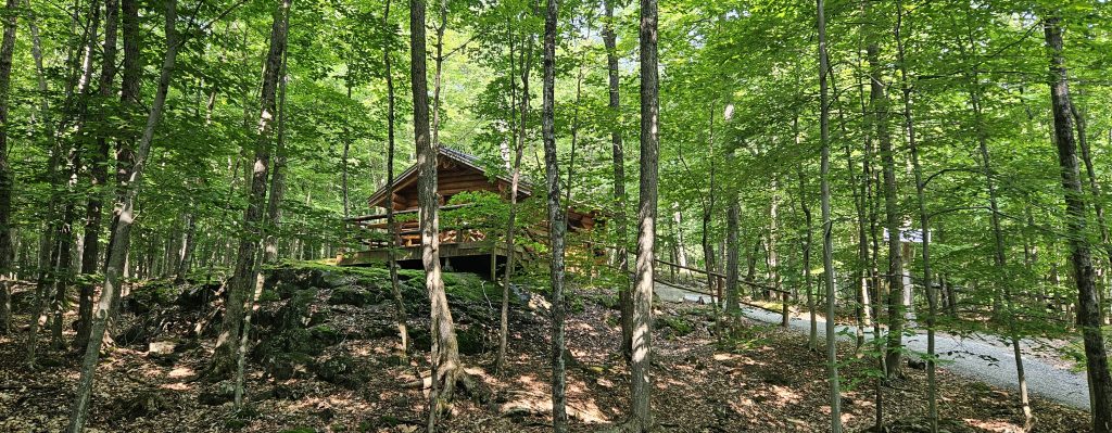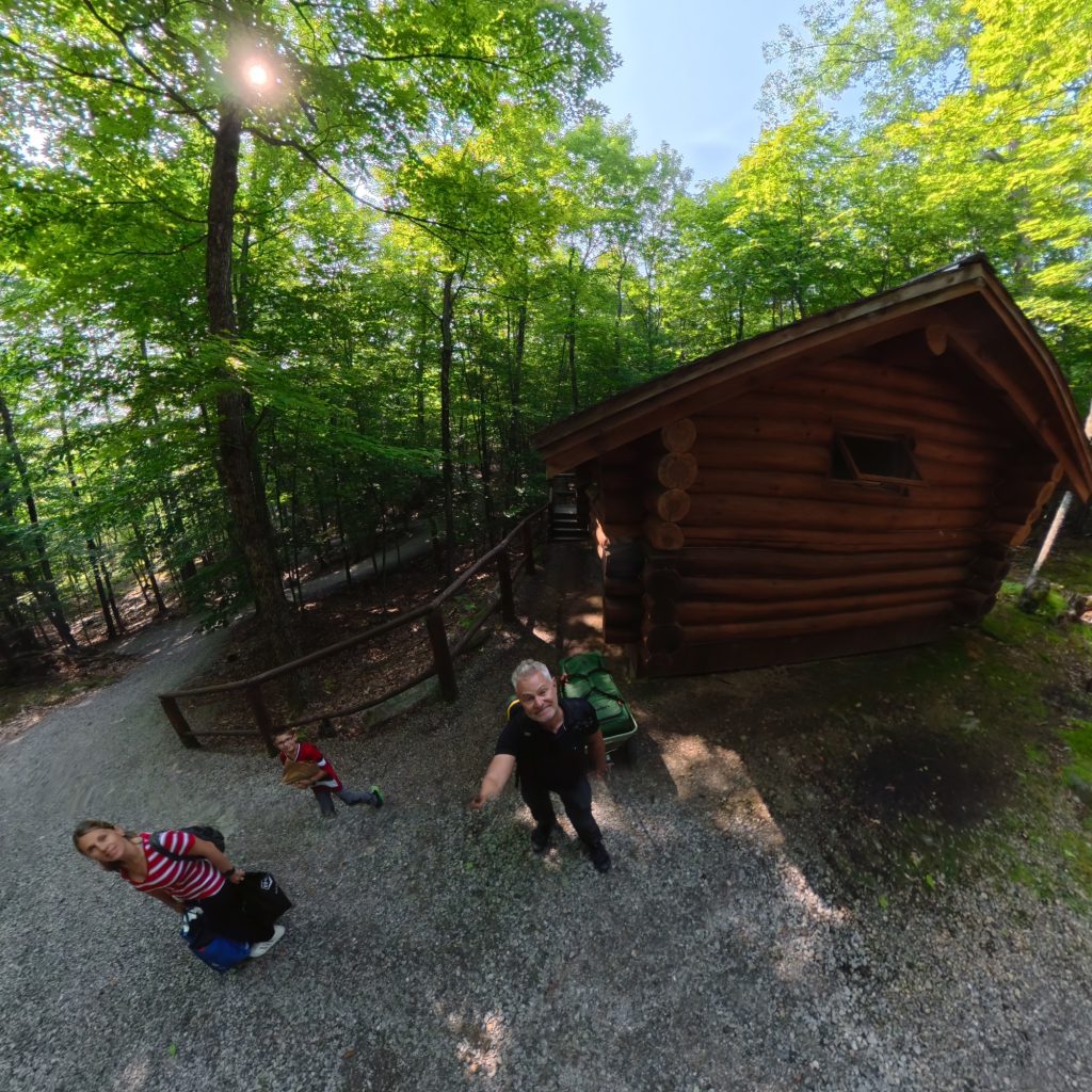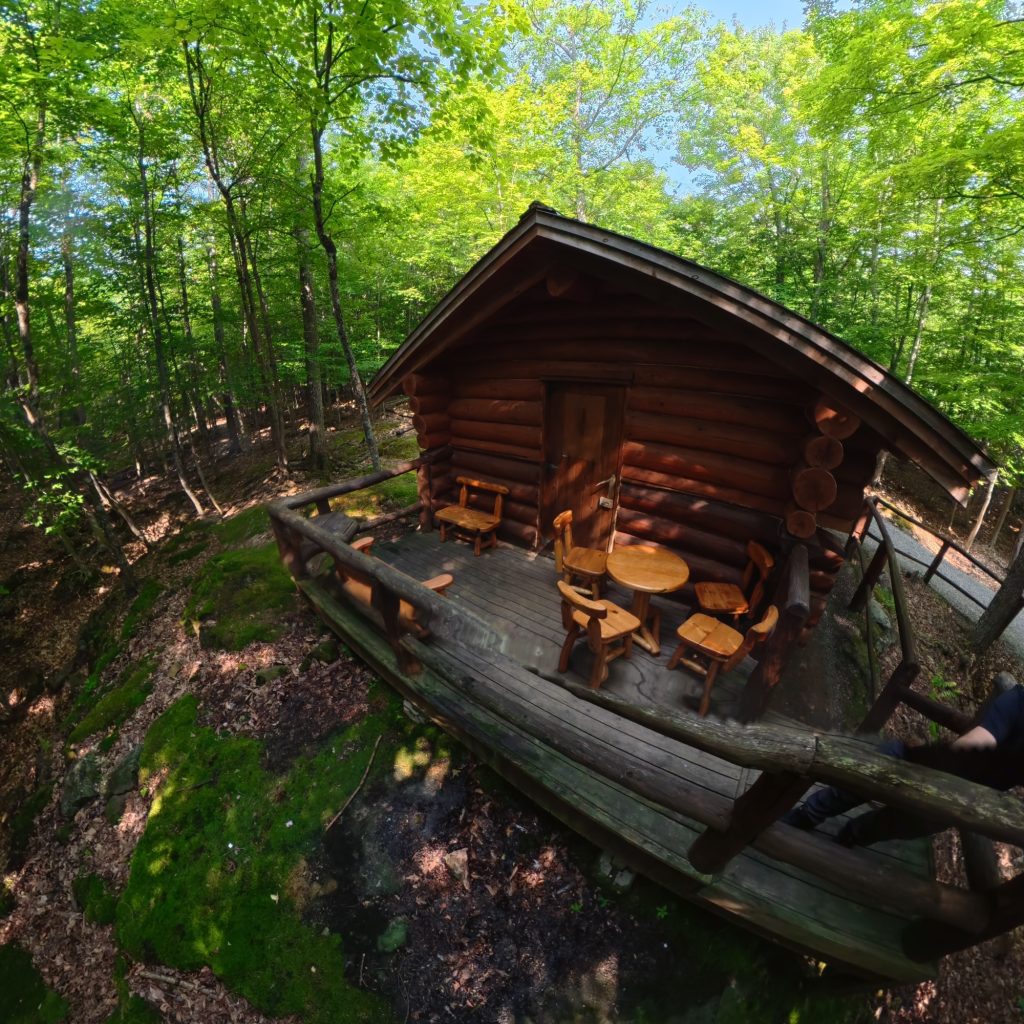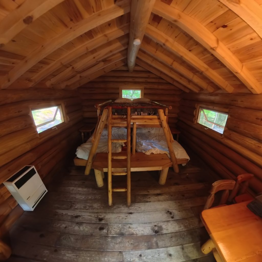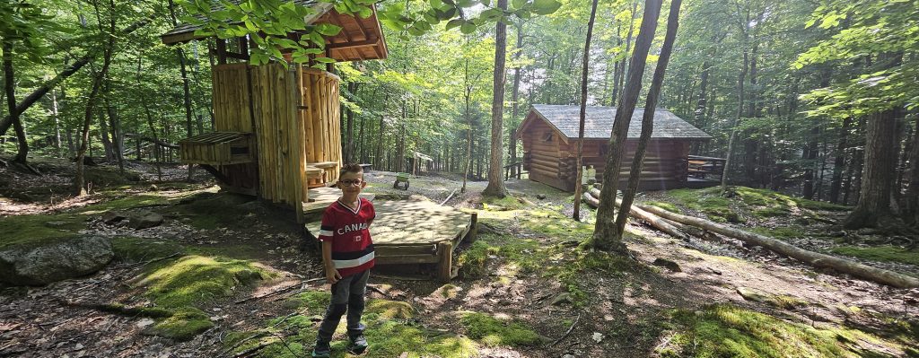 🚶♂️ Après trois heures d’émerveillement, nous avons rejoint notre hébergement insolite pour la nuit : le chalet du prospecteur, en bois rond, caché en pleine nature. Une cabane sans eau courante, avec toilettes sèches extérieures et douches communes à l’écart. Un retour à l’authenticité, version trappeurs.Aucun véhicule n’est autorisé à proximité : il faut tirer un chariot à roulettes pour y acheminer ses valises, sur un sentier d’environ 200 mètres à travers les arbres. Benjamin s’est improvisé guide des bois, tirant avec enthousiasme nos affaires comme un petit colporteur du Nord.