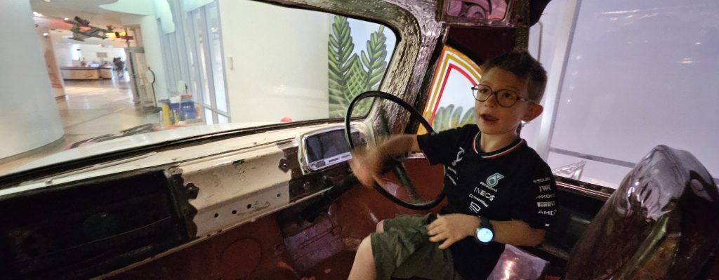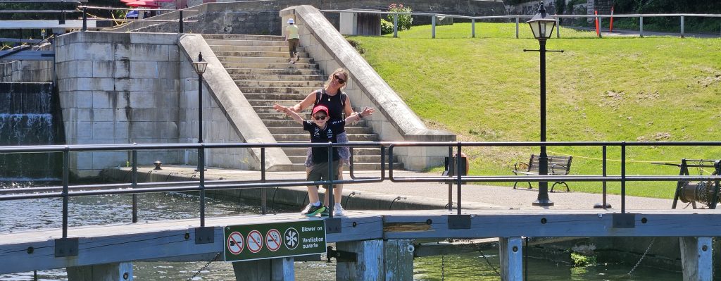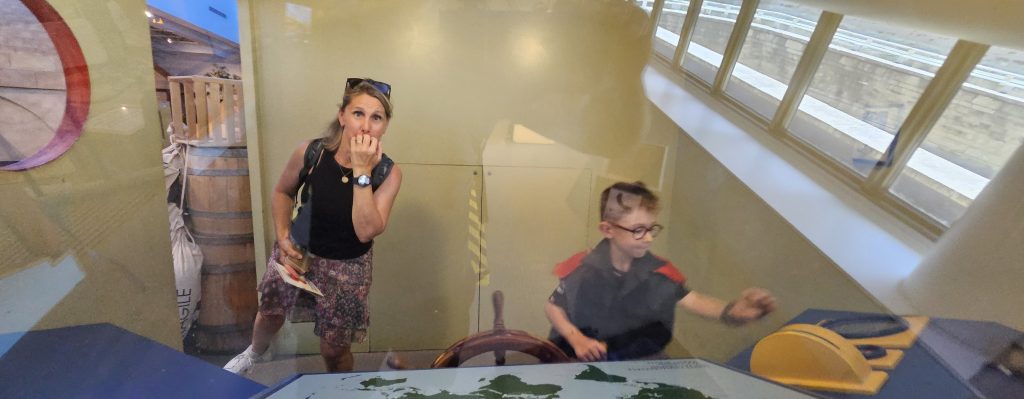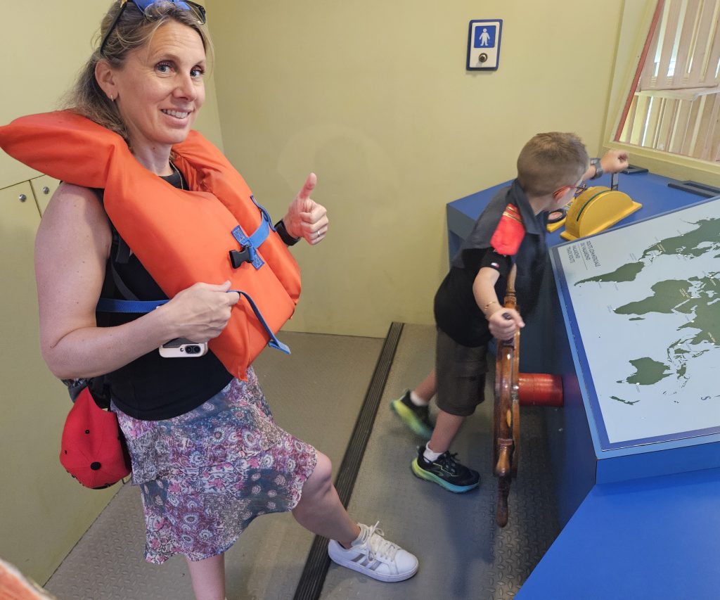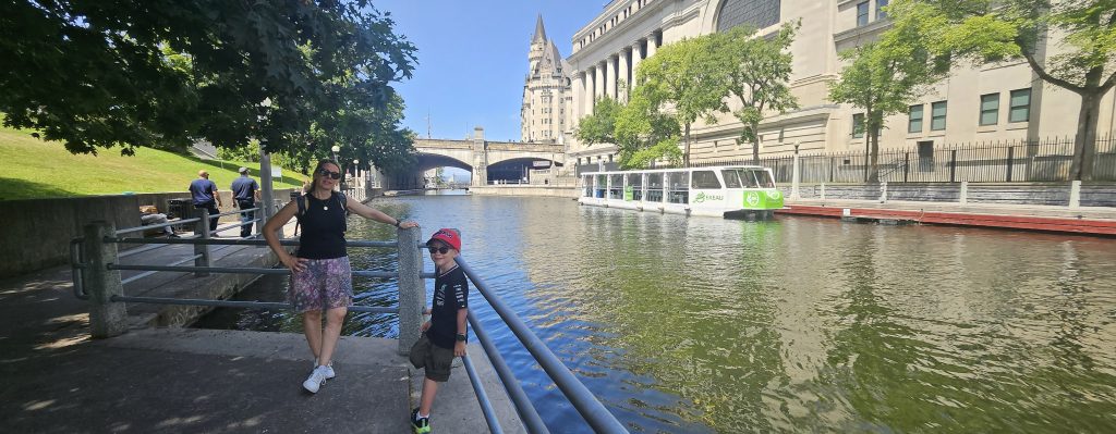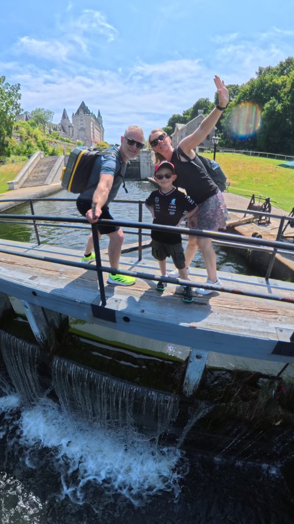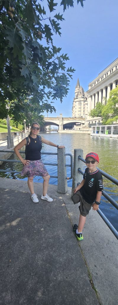 🚶‍♂️ Nous avons poursuivi notre chemin jusqu’aux chutes du canal Rideau, non loin de l’écluse finale, avant de capituler sous la chaleur écrasante. Un Uber plus tard, nous voilà au Musée canadien des enfants à Gatineau, dans l’aile familiale du Musée canadien de l’histoire. Benjamin s’y est régalé : il a joué au capitaine de bateau, au metteur en scène dans un théâtre miniature, et a exploré un monde pensé pour les enfants avec une ingéniosité remarquable. Mention spéciale à l’atelier de douanes où il devait tamponner son passeport pour chaque pays visité !