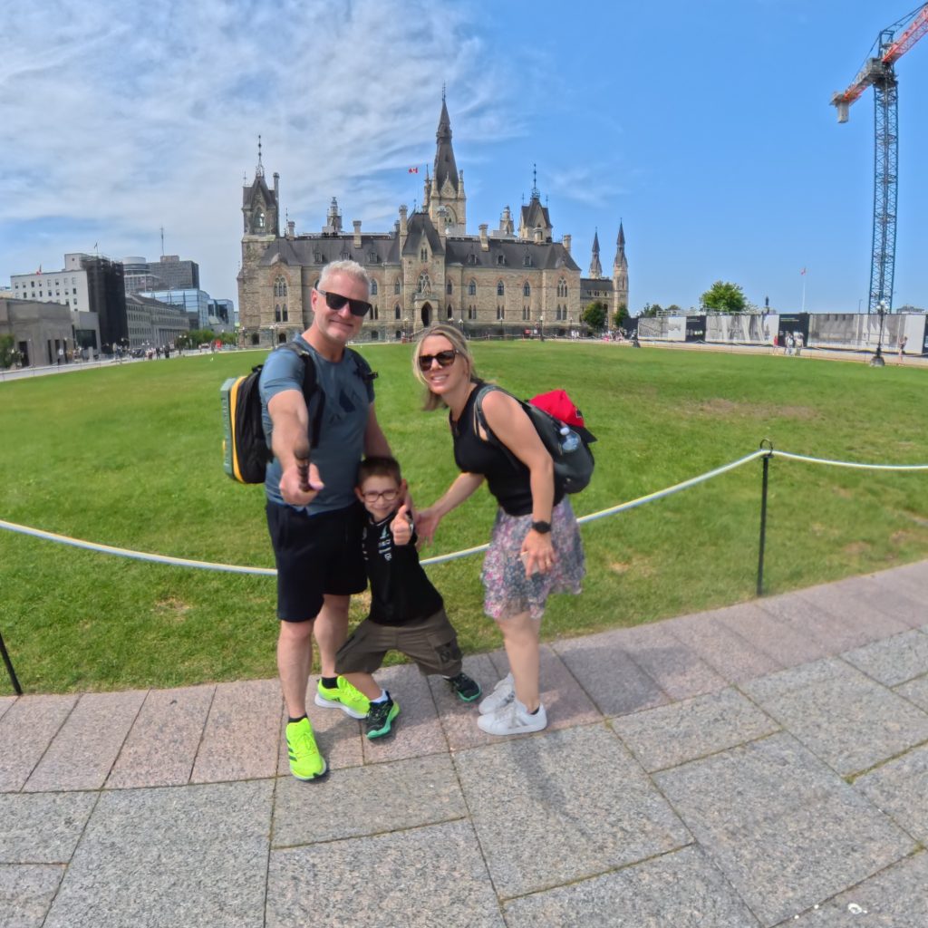 Cette étape nous a offert un contraste saisissant : de la nature indomptée aux institutions canadiennes, de la frénésie touristique à l’intimité d’un repas de famille inoubliable.Nous avons logé en plein centre-ville, dans un hôtel spacieux et confortable, idéalement situé pour découvrir la ville à pied. Le lendemain matin, malgré une chaleur accablante – 41 degrés à l’ombre, sans compter l’humidex –, nous avons chaussé nos baskets et parcouru la ville en famille.