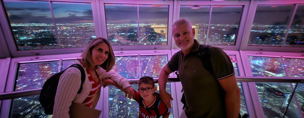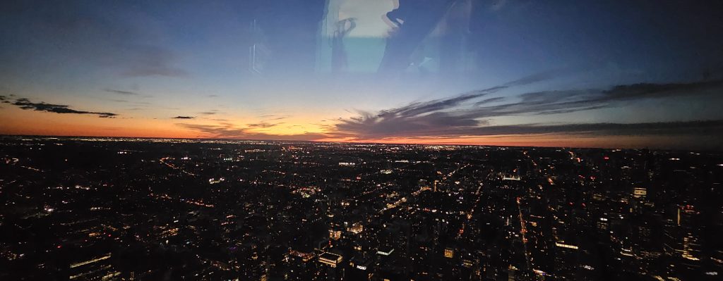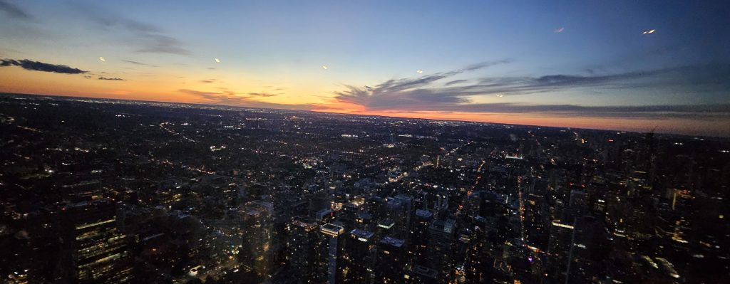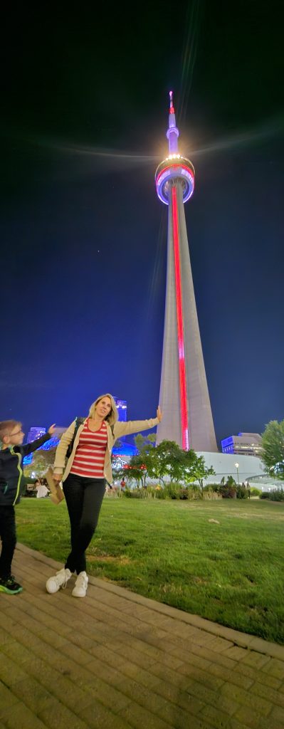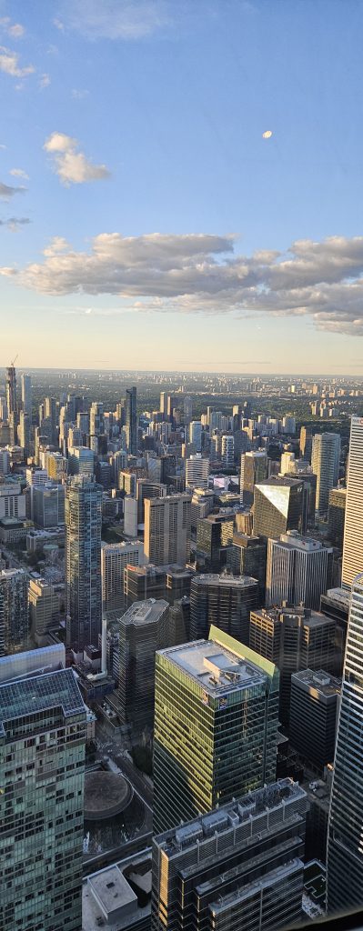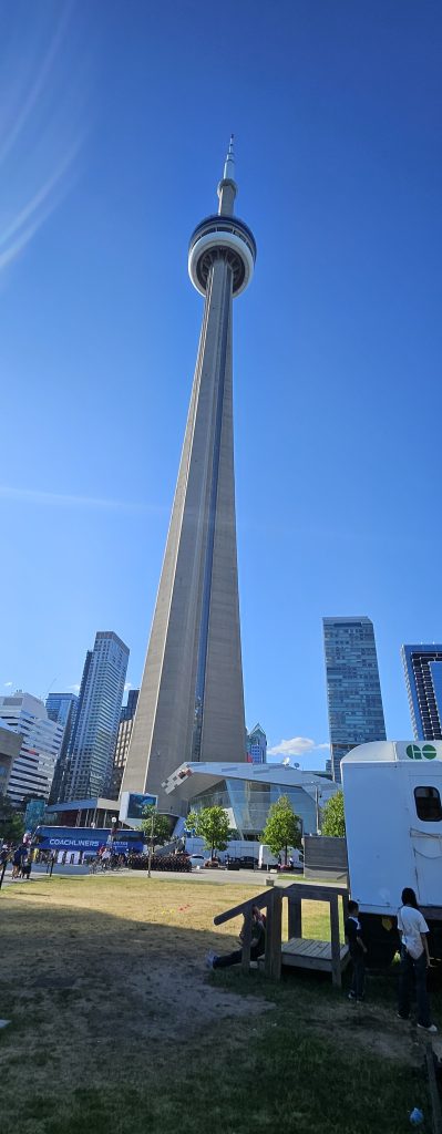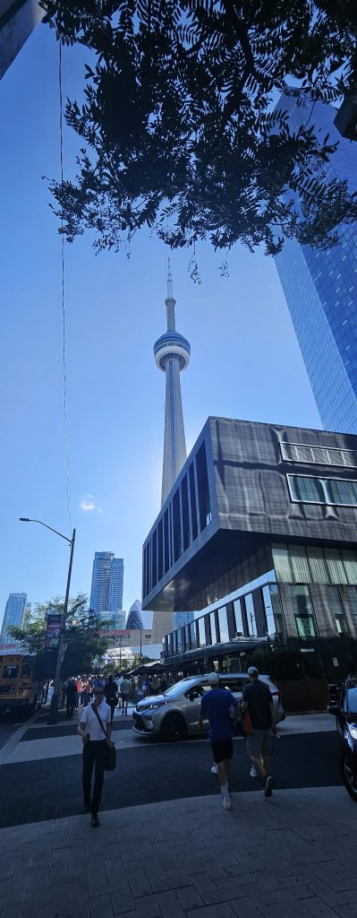 🎟️ Ce soir-là , Toronto bourdonnait plus que d’ordinaire : un match de baseball se jouait au Rogers Centre, et les rues autour de la Tour CN étaient noires de monde. Il fallait parfois jouer des coudes pour avancer, mais cette animation ajoutait une dimension vivante à notre promenade urbaine.