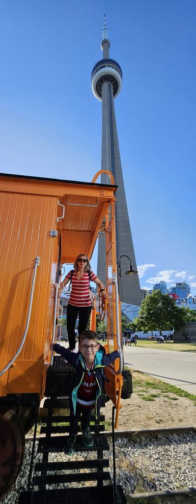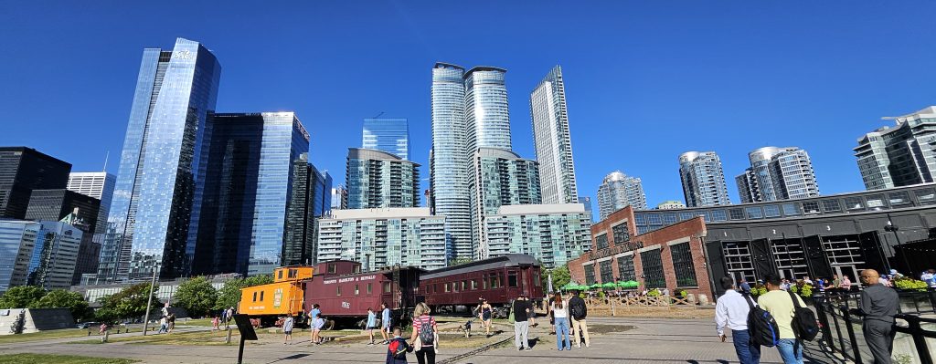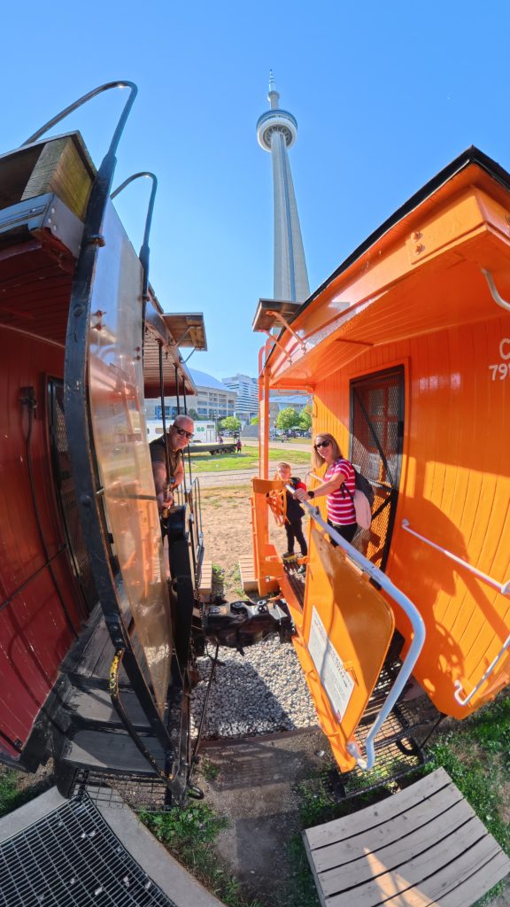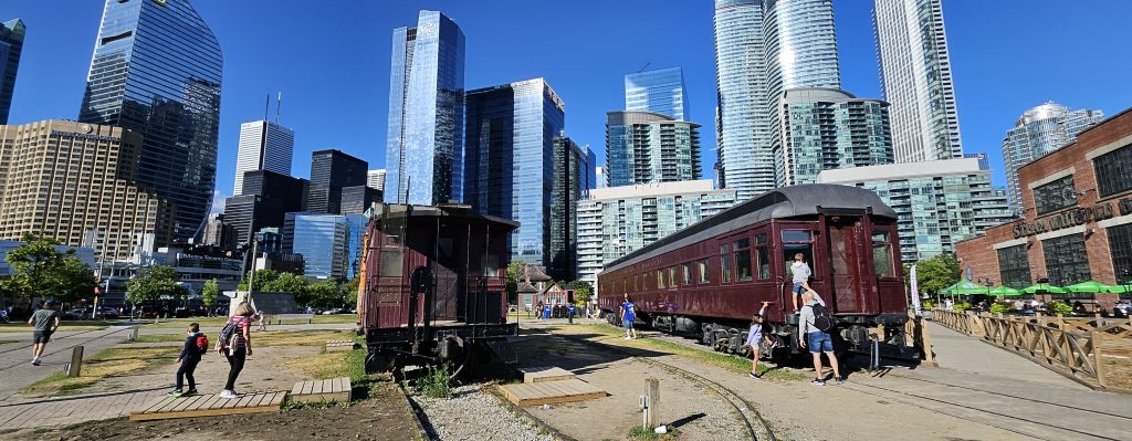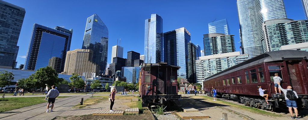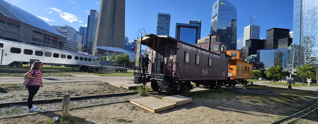 🚶‍♂️ L’après-midi, cap vers le sud de la ville. En chemin vers la fameuse Tour CN, nous avons traversé le quartier de Railway Museum Park, où se dresse l’ancienne gare de triage du Canadien National. Ce lieu emblématique — le Roundhouse Park — abrite aujourd’hui un musée ferroviaire à ciel ouvert. Entre anciennes locomotives à vapeur, wagons d’un autre temps et rails rouillés, c’est toute l’épopée du chemin de fer canadien qui resurgit, rappelant le rôle fondamental du rail dans la construction du pays. Une pause pleine de charme et de mémoire, au cœur d’un site autrefois névralgique pour le fret ferroviaire.