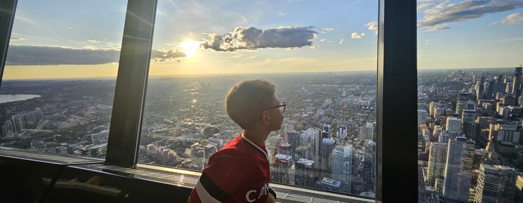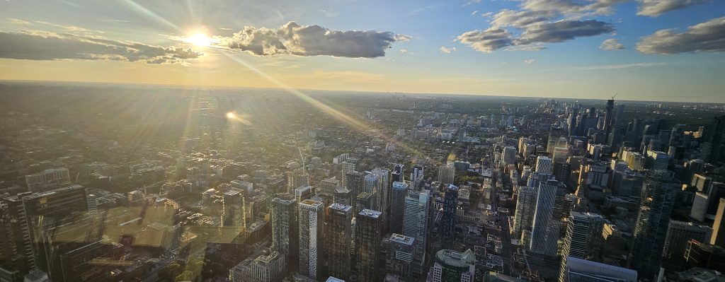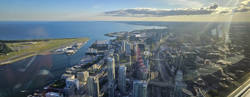 🛬 Le 20 juillet au matin, les valises étaient prêtes bien avant l’aube. Levés à 3 h, nous quittions Calgary, le cœur encore habité par les grands espaces de l’Ouest. L’avion décollait à 6 h, mais avec les deux heures de décalage horaire vers l’avant, c’est en début d’après-midi que nous avons foulé le sol de Toronto, mégapole tentaculaire de l’Ontario. La fatigue du voyage se faisait sentir : le contraste entre la nature sauvage de l’Alberta et l’agitation urbaine de la plus grande ville du Canada était saisissant. Une fois installés à l’hôtel, nous avons opté pour une première pause bien méritée, à deux pas de notre hébergement.