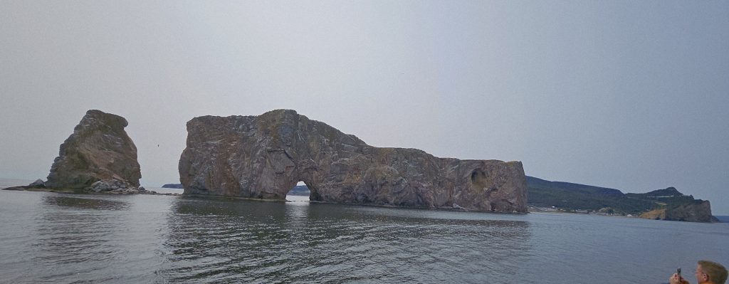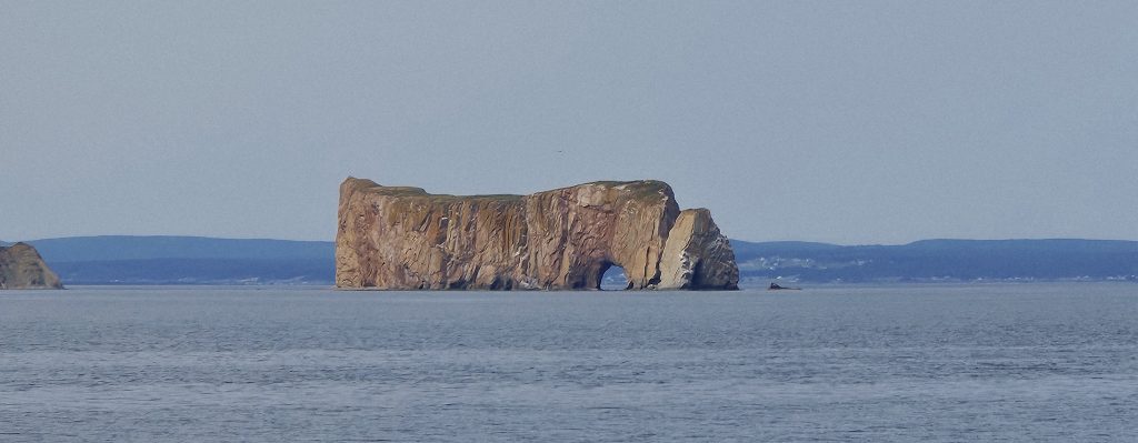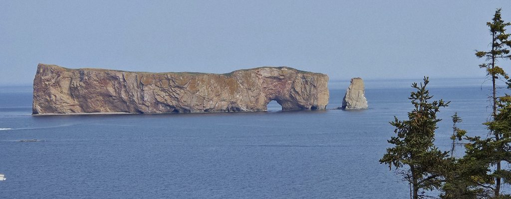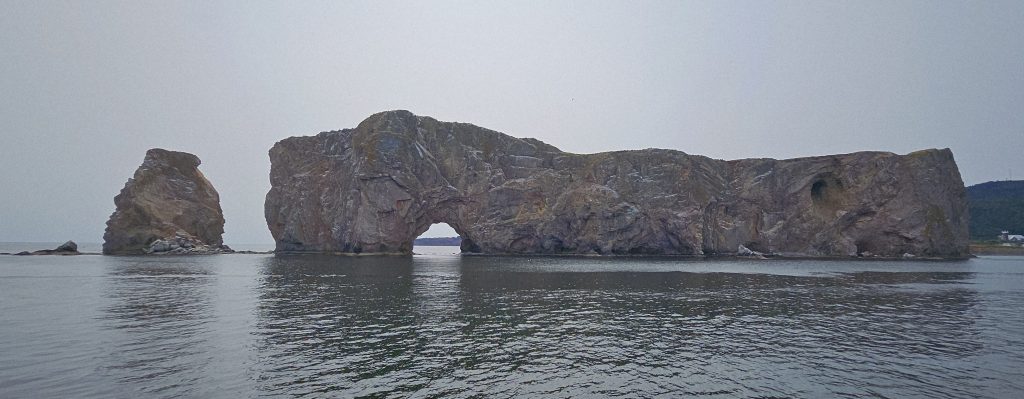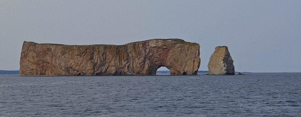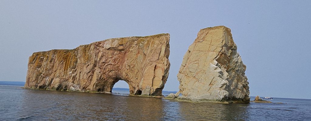 Le Rocher PercĂ©, icĂŽne de la GaspĂ©sie, se dresse fiĂšrement Ă 433 mĂštres de long et 88 mĂštres de haut. Il doit son nom Ă lâarche naturelle qui le transperce, formĂ©e par lâĂ©rosion de la mer et des vents.