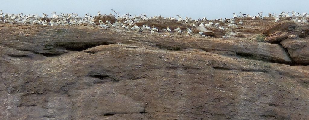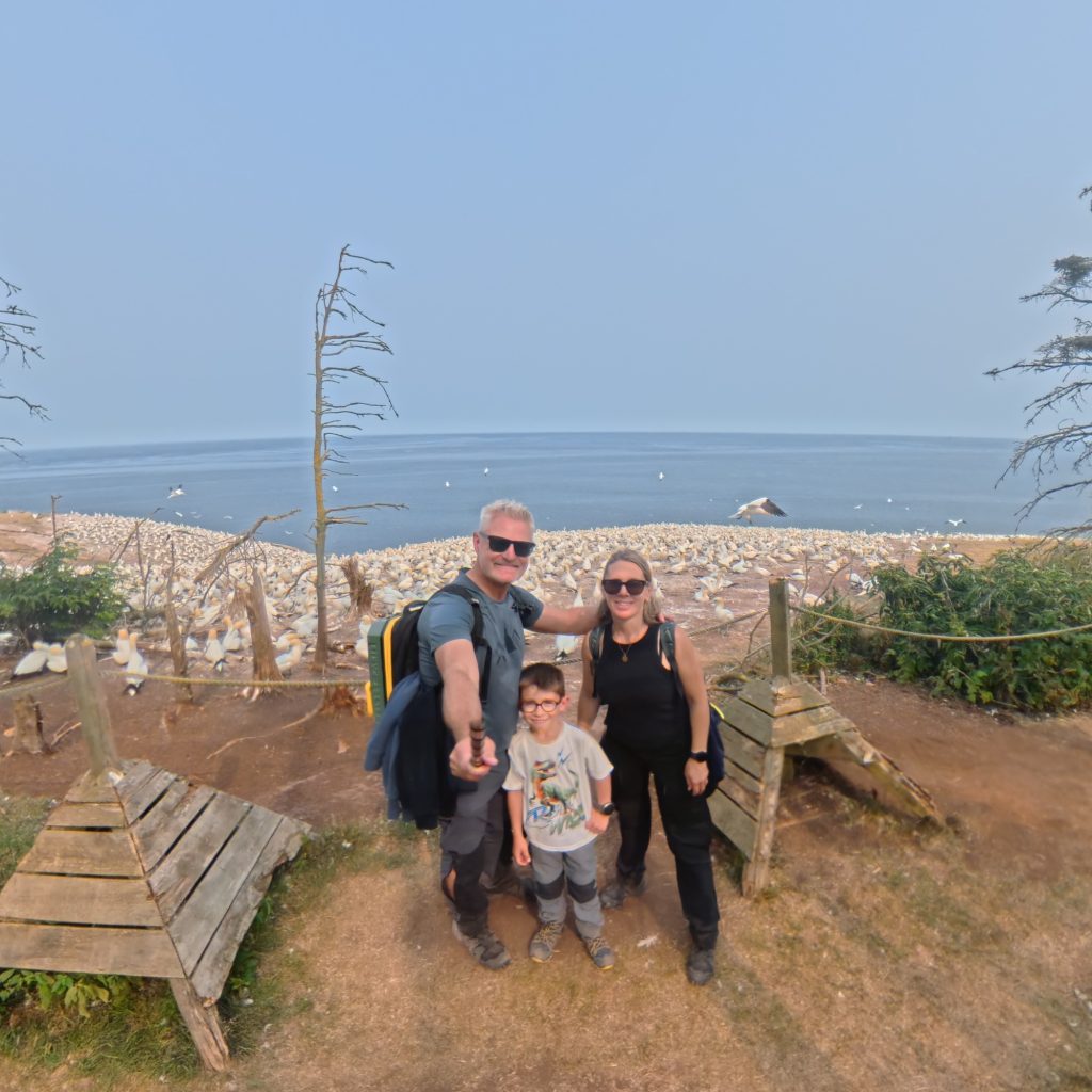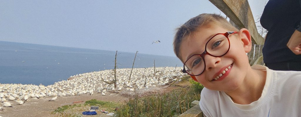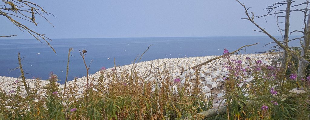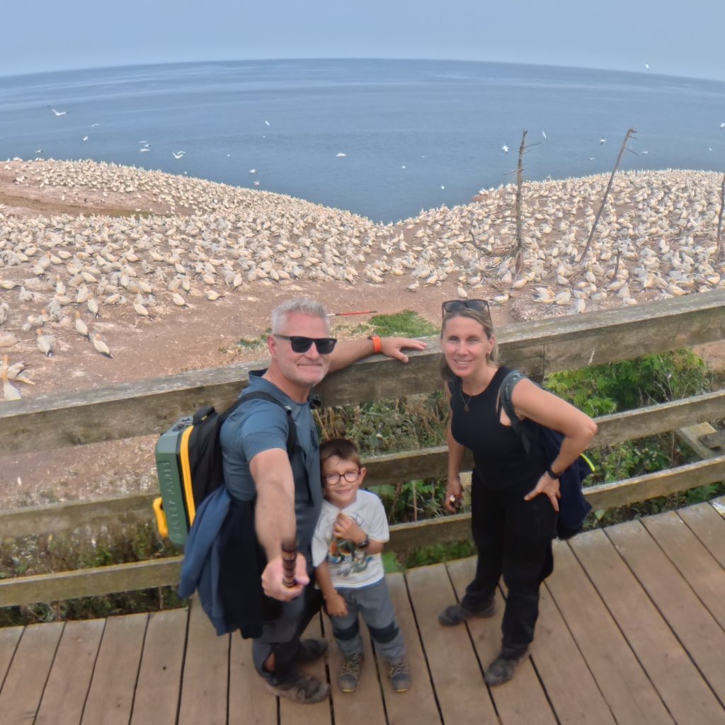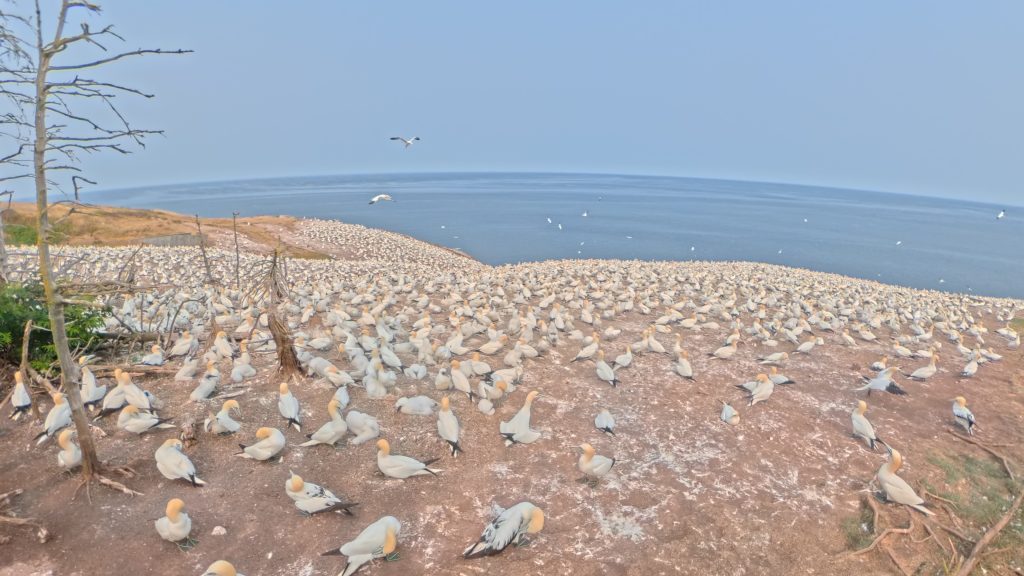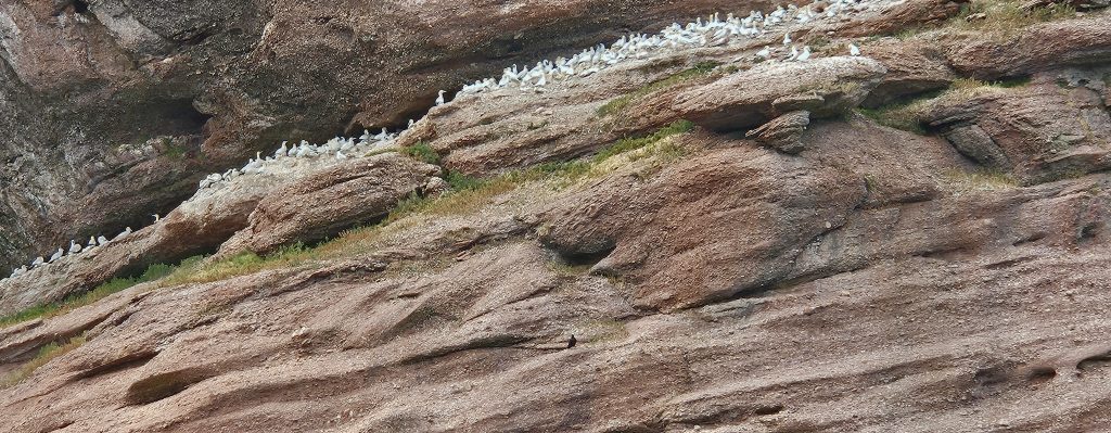AprĂšs avoir contournĂ© le rocher, le bateau nous dĂ©pose sur lâĂle Bonaventure, cĂ©lĂšbre pour abriter la plus importante colonie de fous de Bassan au monde : plus de 100 000 individus en Ă©tĂ© đŠ.