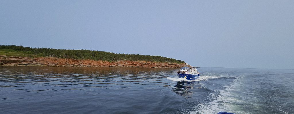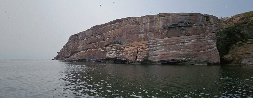 Nous avons embarquĂ© pour une croisiĂšre autour du rocher, longeant ses falaises abruptes oĂč viennent se reposer des phoques gris đŠ. Plus au large, la mer sâest animĂ©e avec la prĂ©sence de baleines đ, offrant un ballet naturel impressionnant.