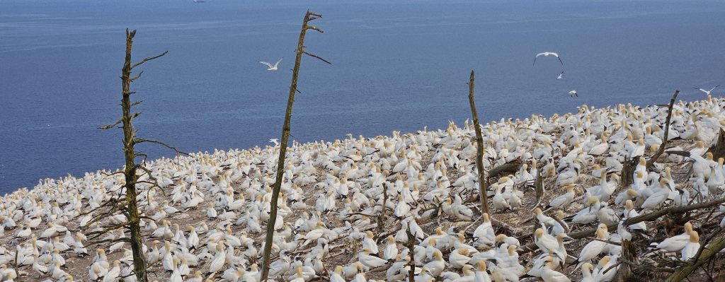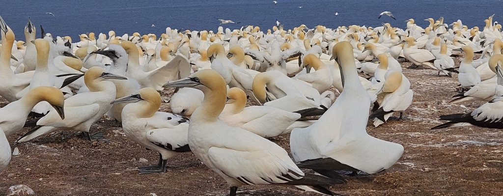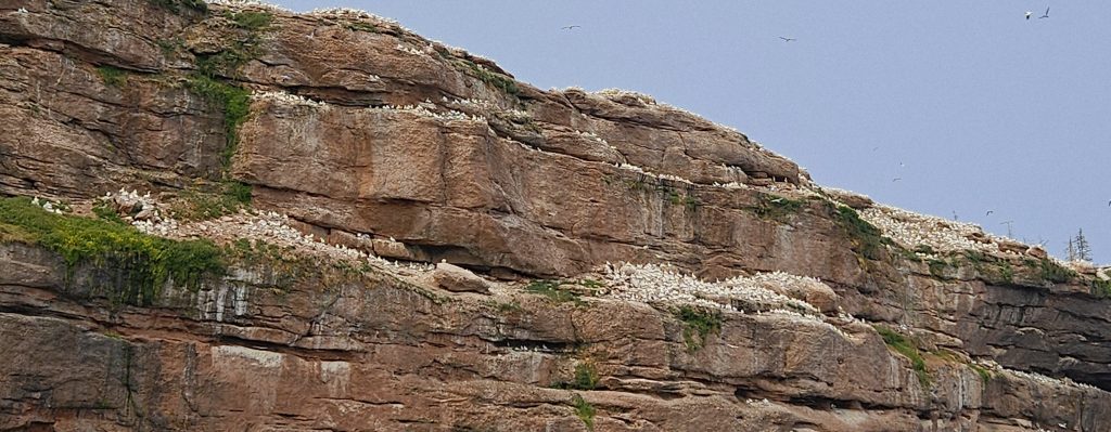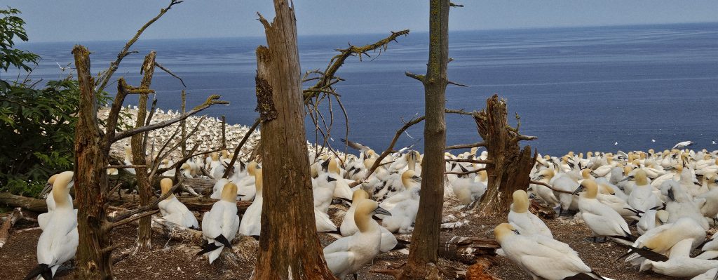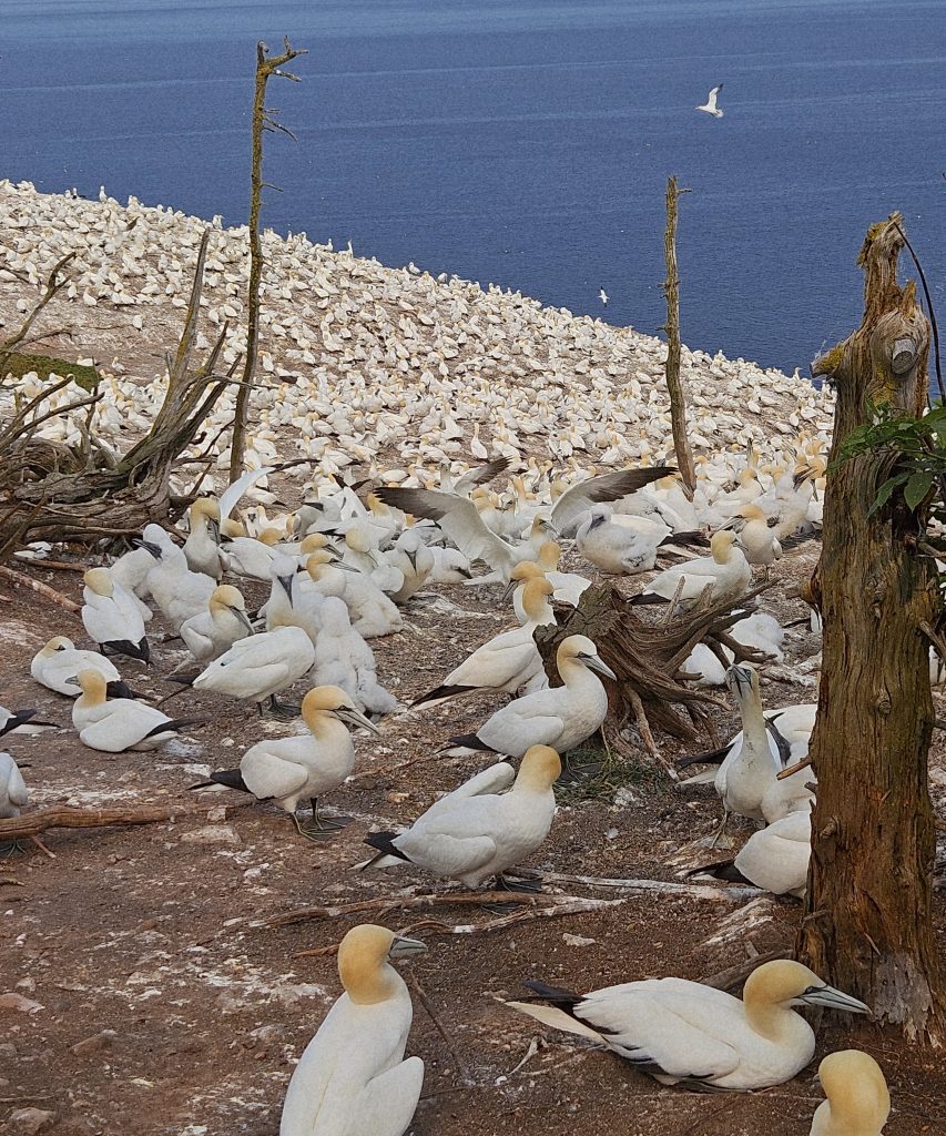 Fait marquant đ : lâĂźle fut habitĂ©e jusquâau milieu du XXá” siĂšcle par des pĂȘcheurs et leurs familles, vivant de la morue et du homard. En 1971, le gouvernement du QuĂ©bec rachĂšte lâĂźle pour en faire un parc national, prĂ©servant ainsi sa faune et sa flore.La randonnĂ©e jusquâĂ la colonie est une expĂ©rience unique : Ă mesure que lâon sâapproche, le vacarme devient assourdissant et lâodeur marine se fait plus forte. Devant nous, des milliers dâoiseaux se livrent Ă un spectacle incessant : dĂ©collages, atterrissages, nourrissage des poussins⊠une vĂ©ritable ville ailĂ©e en pleine effervescence.
