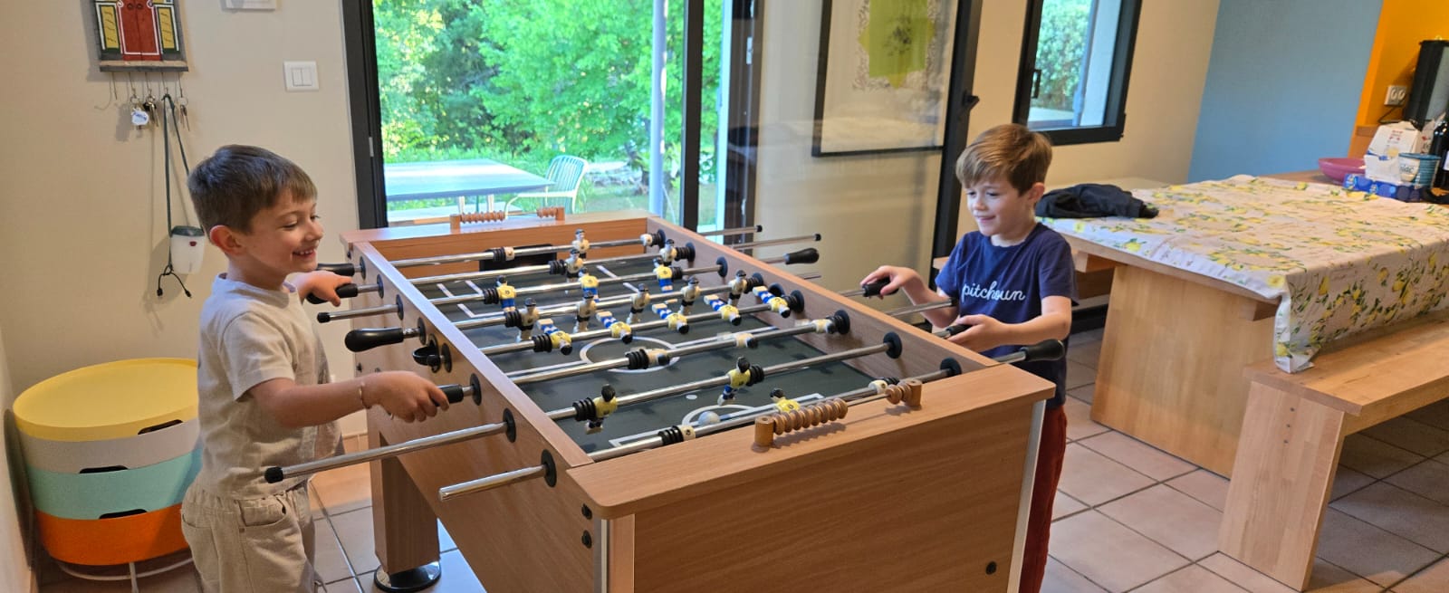 Avec Alexis, Céline, leurs adorables enfants Léon et Lise, et notre tribu à nous, l’ambiance était à la fois douce, animée et joyeusement chaotique — comme on les aime. Dès notre arrivée, la maison nous a conquis : piscine, grande terrasse, plancha, babyfoot… tout y était pour que chacun trouve son bonheur, petits comme grands.